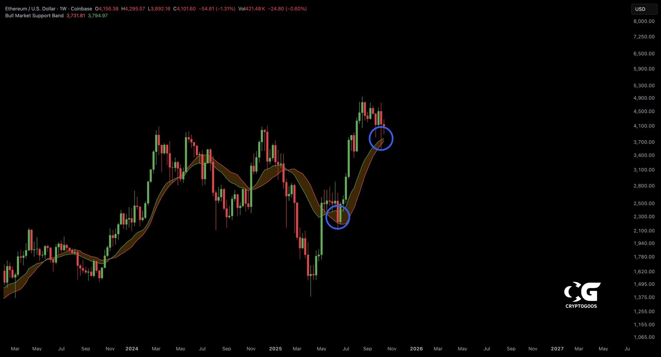 Still, the road isn’t guaranteed. Some charts show weakening buying volume and lower highs, classic signs that momentum is fading unless new capital enters. A failed push above resistance would keep ETH stuck between $3,900 and $4,100.