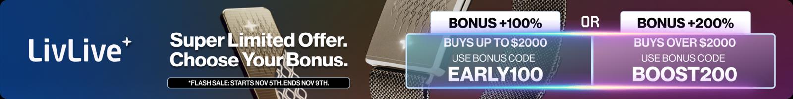 LivLive ($LIVE) flash event is redefining presale rewards. Buyers earn 100% bonus tokens on purchases up to $2,000 using EARLY100, or 200% bonuses above $2,000 with BOOST200. A $1,000 buy yields 100,000 tokens worth $25,000 at listing. Doubling to $2,000 secures 150,000 tokens, valued around $37,500 at launch. When the timer hits zero, these bonuses vanish forever, leaving only higher prices and closed opportunities. LivLive’s early movers are proving that fast action still beats perfect timing in crypto’s final 2025 sprint.