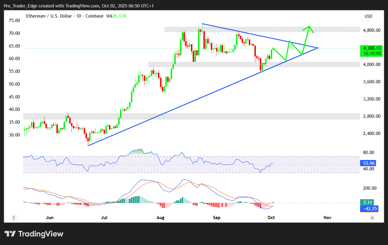 Another analyst, BitBull, pointed out that Ethereum successfully converted the $4,000 level from resistance into support. This flip is viewed as a positive development by market observers.