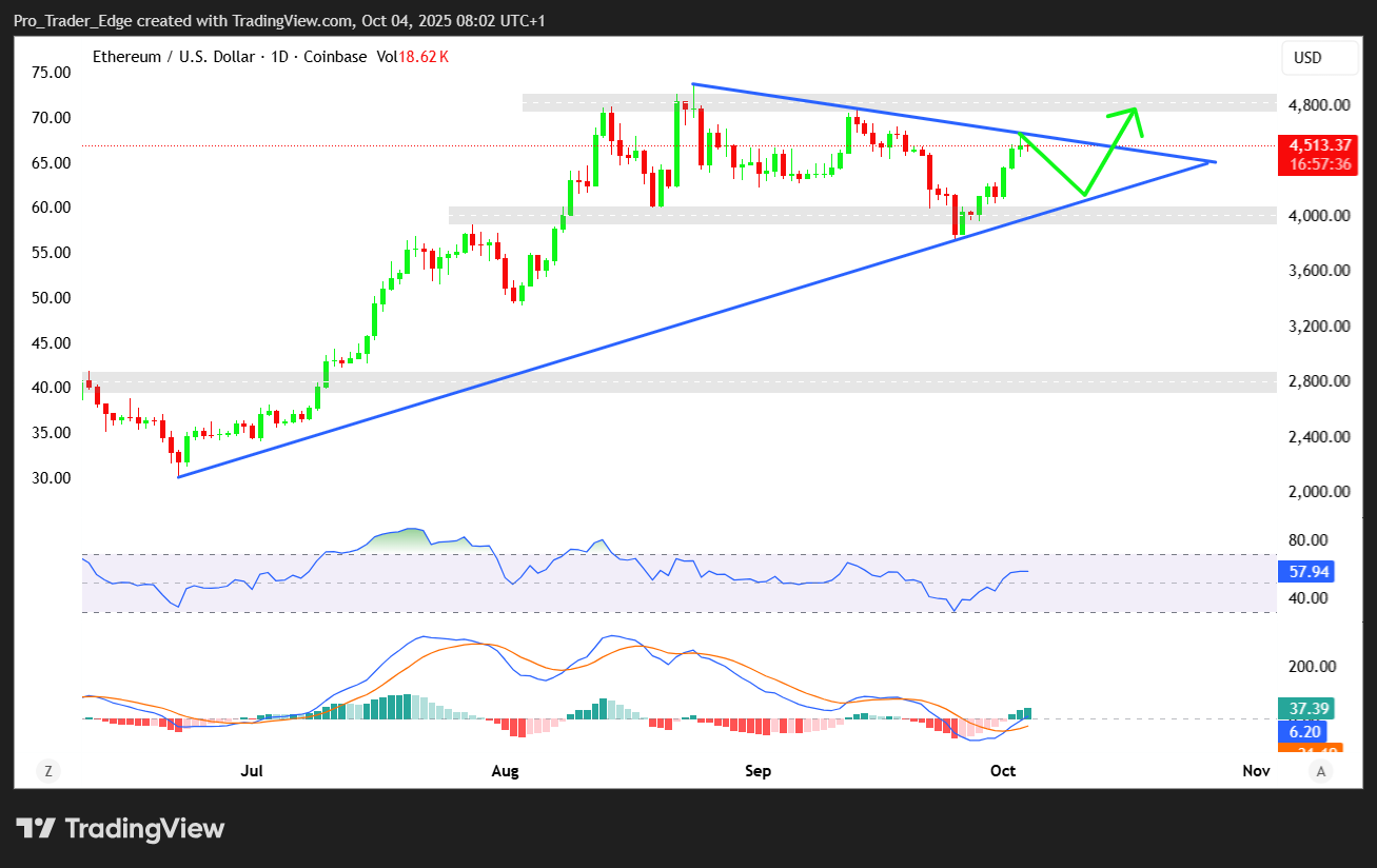Analyst Ted Pillows identified resistance around $4,500. He stated that breaking this level could push prices toward $4,700 or $4,750. Failure to break resistance may result in a pullback to $4,250.