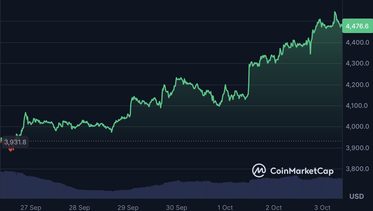 - Watch for a confirmed retest of $4,400 or resistance zones. A holding above those levels suggests structural strength and validates ETH momentum.
