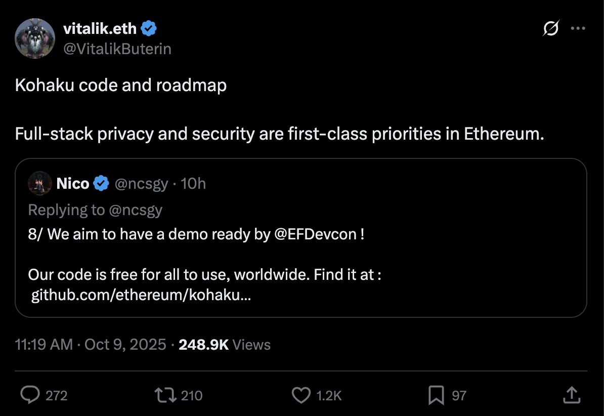 This week, Ethereum developers unveiled the Kohaku roadmap, a new initiative led by the Ethereum Foundation and partners like Ambire, Railgun, and Oblivious Labs. It’s Ethereum’s most aggressive privacy push yet, and it’s backed by a coalition of 47 engineers under the Privacy Cluster initiative.