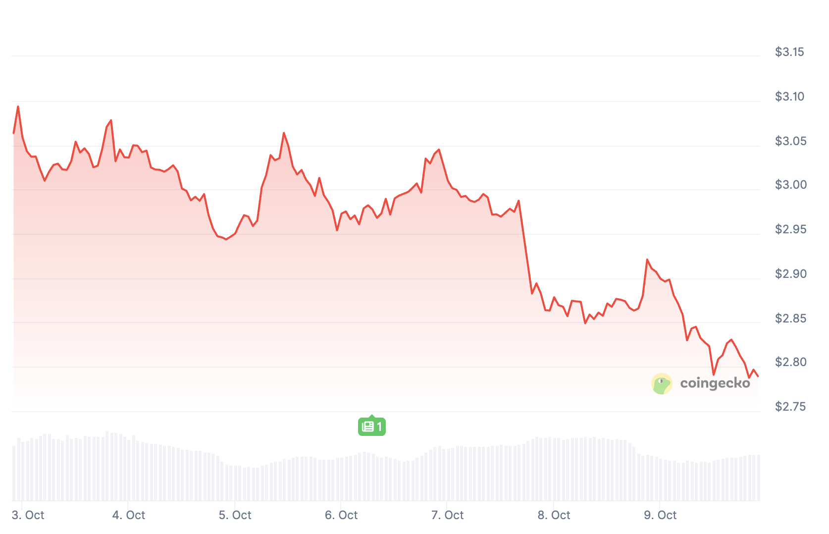 Without a quick reclaim of $2.85 or the $3.00 psychological mark, the short-term structure stays bearish.