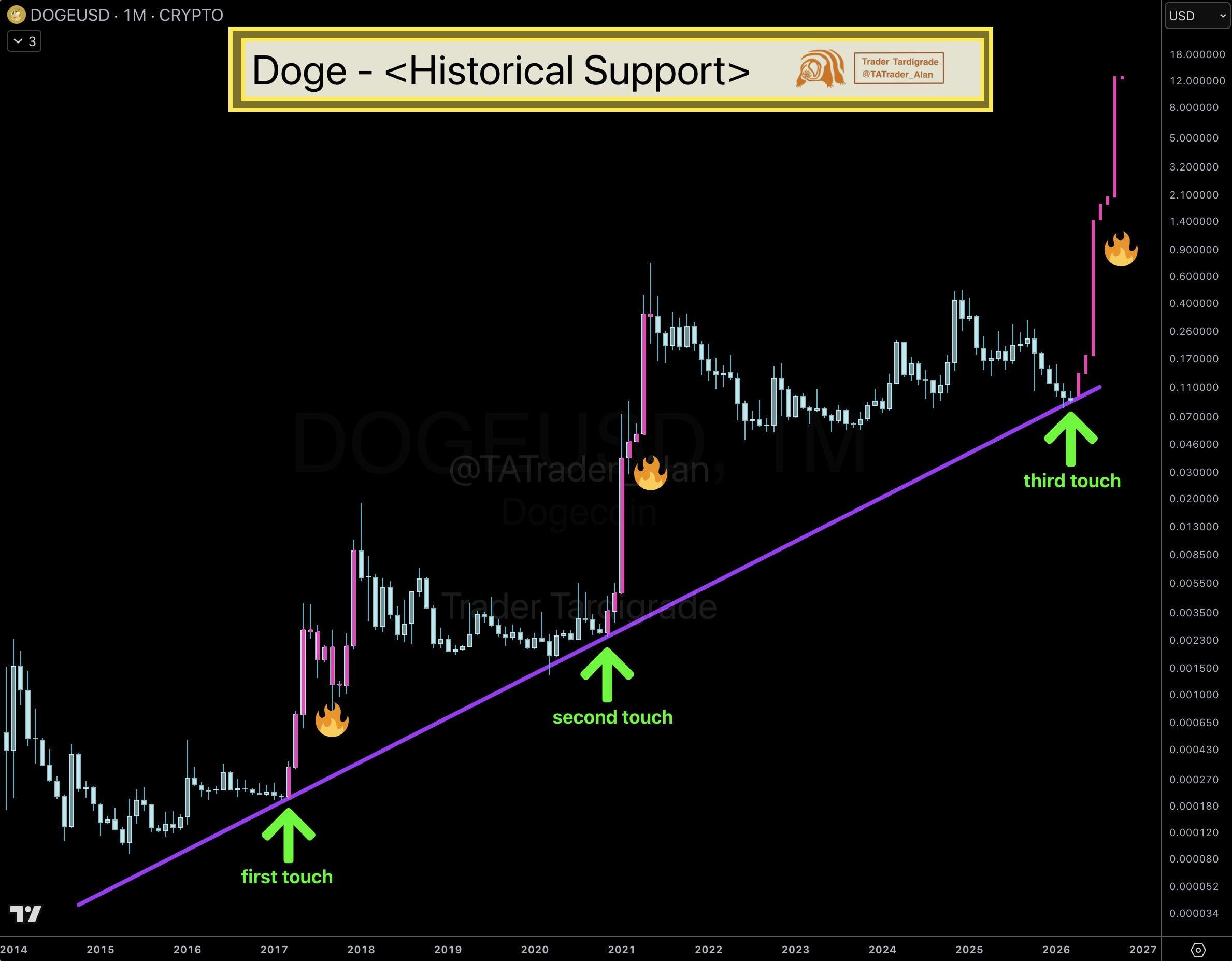 Meanwhile, a market expert, Trader Tardigrade, noticed that Dogecoin has touched a major ‘support level’ for the third time. This is often a sign that the asset is preparing for another upward move.