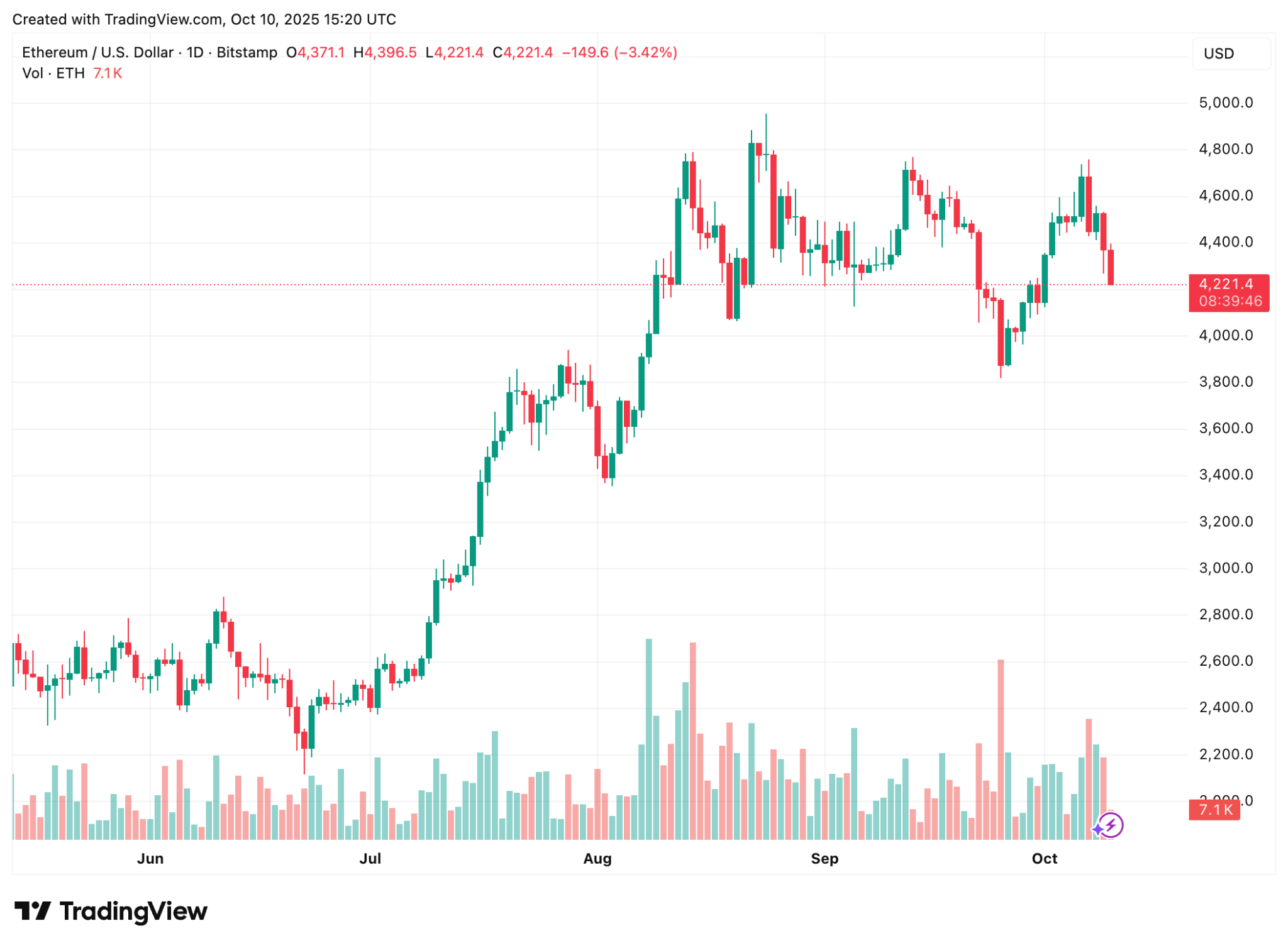 Ethereum trades near $4,222 and the coin is above a support following a short pullback. The price is close to $4,339 with a volume of approximately 14.6 billion within 24 hours. Bulls desire a clear cut between $4,700 and $4,900 towards $5,200. A slide below the 50-day EMA towards $4,150 would potentially welcome a challenge at $3,900.