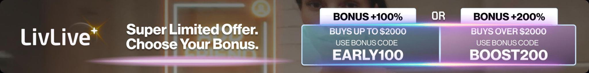 - Buy $2,000+ and use code BOOST200 for a 200% Bonus