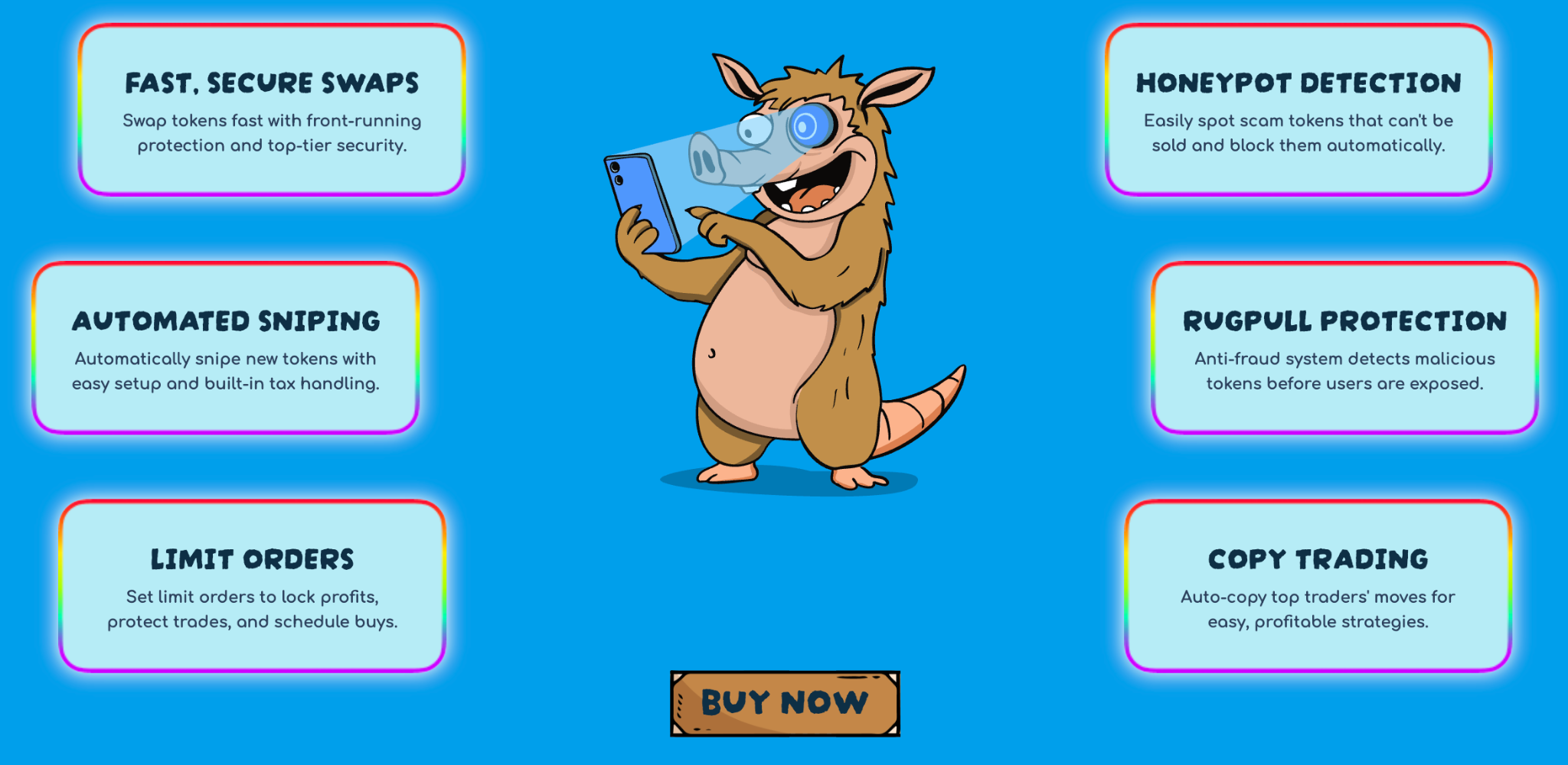 The Snorter trading bot is built on Telegram as a full-fledged, intuitive tool that helps users enter and exit trades within milliseconds. In the fast-paced meme coin environment, having this edge could mean the difference between 10x gains and breaking even. Below, we’ve briefly highlighted some of the bot’s key features: