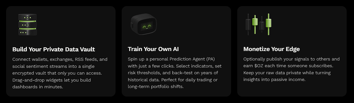 Ozak AI is a blockchain-based crypto project that provides a technology platform that specializes in predictive AI and advanced data analytics for financial markets. Through machine learning algorithms and decentralized network technologies, Ozak AI enables real-time, accurate, and actionable insights to help crypto enthusiasts and businesses make the correct decisions.