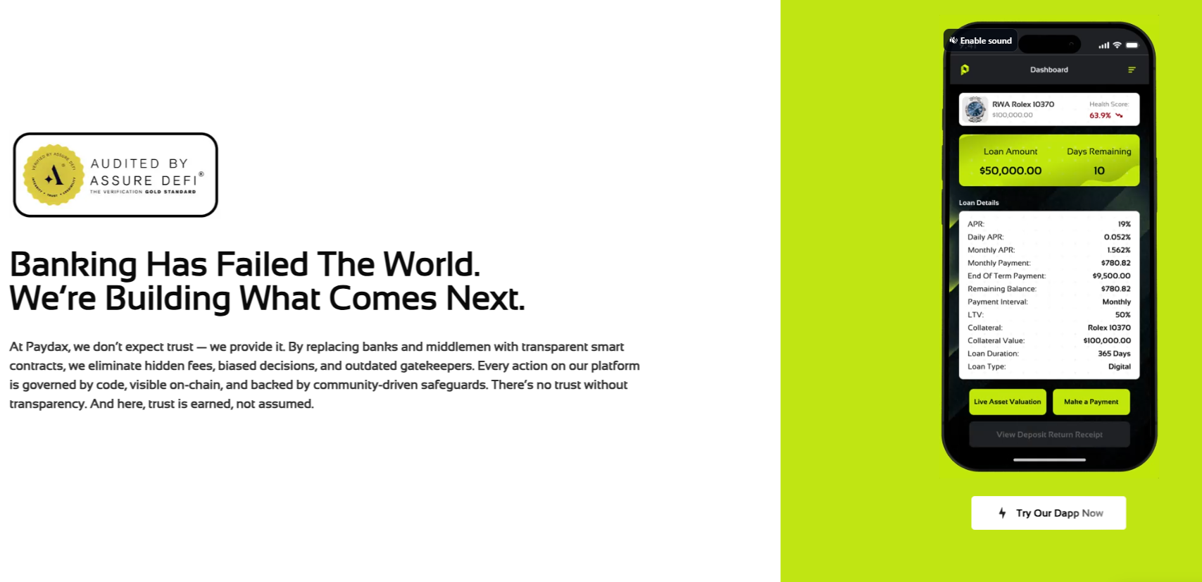 By combining crypto and RWAs under one protocol, PayDax bridges the gap between decentralized finance and traditional banking. The result is a borderless, global lending model where users from any location can unlock capital without the barriers of geography or centralized institutions.