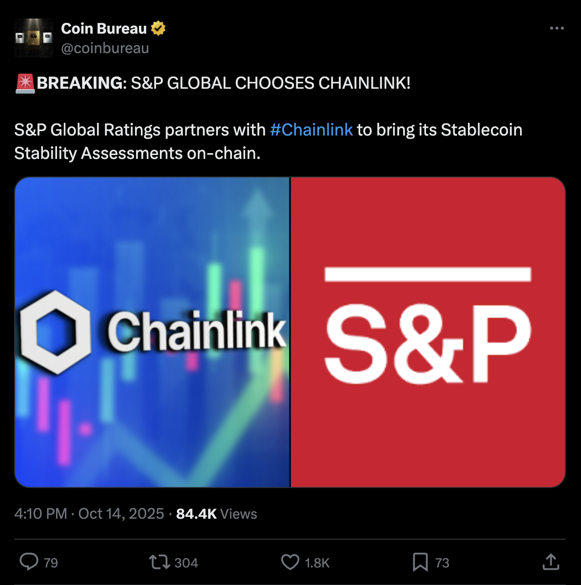 “This unlocks a critical framework for institutions adopting stablecoins at scale,” said Chainlink CEO Sergey Nazarov, highlighting that this is the first time S&P’s ratings framework will be deployed directly within blockchain infrastructure.