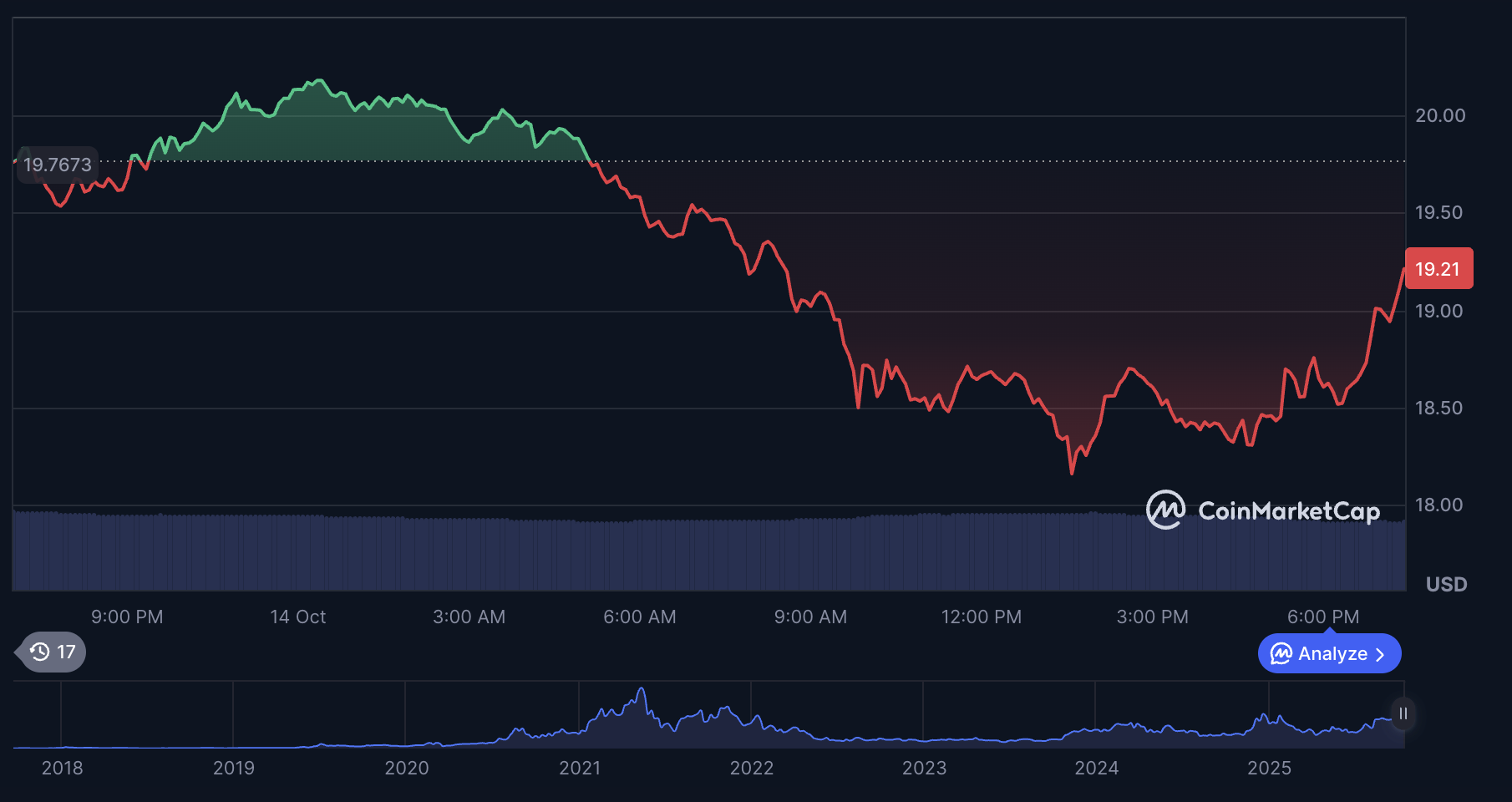 Chainlink (LINK) slipped more than 5% to $18.41 on October 14th, even as major news broke that S&P Global Ratings is now delivering real-time stablecoin risk scores on-chain using Chainlink’s DataLink.