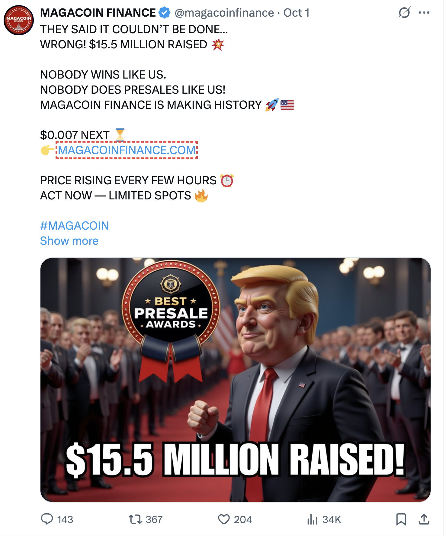 Crypto experts often emphasize that timing is everything. Entering a project before exchange listings is where the highest multiples are made. MAGACOIN FINANCE offers that early entry advantage, combining: