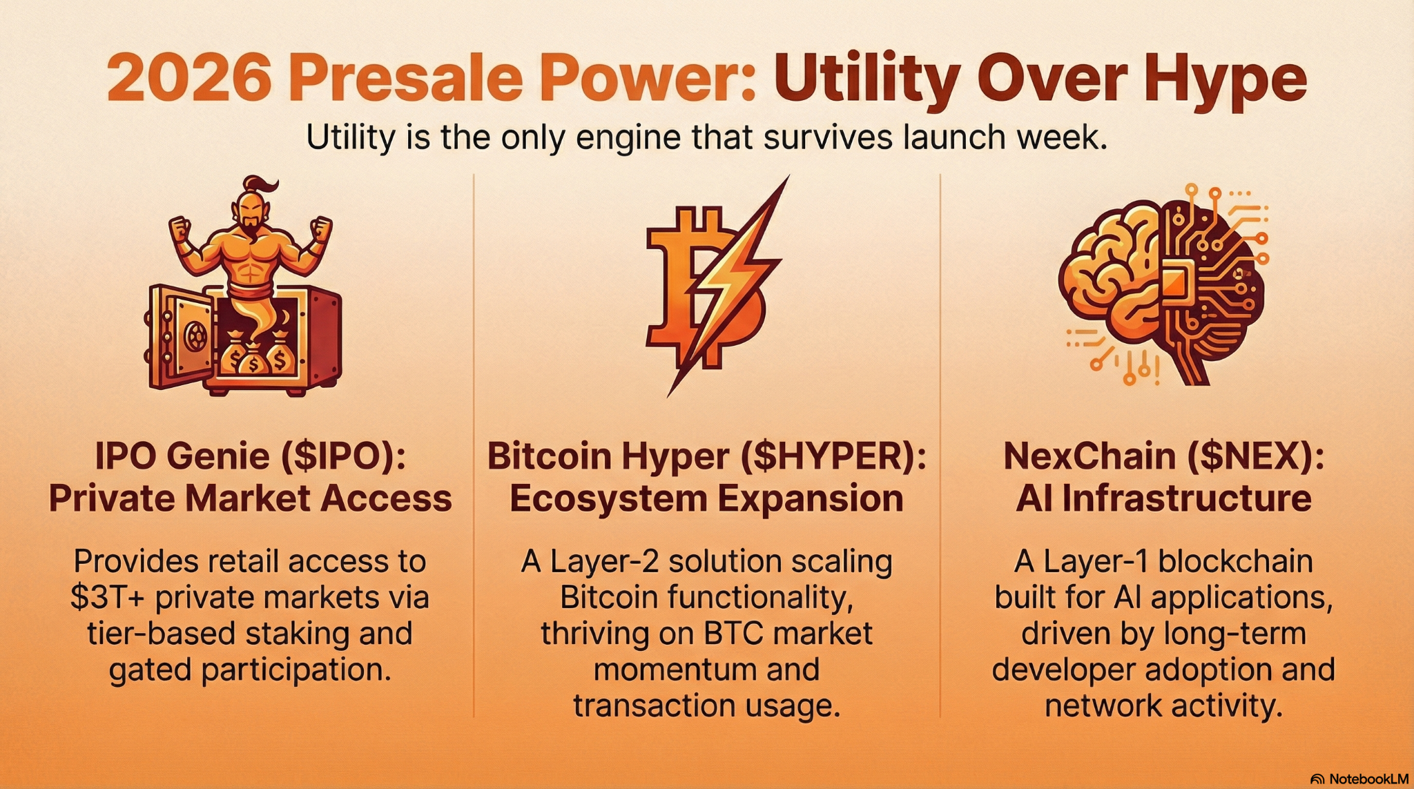 So let’s cut through the noise. IPO Genie ($IPO) pushes private-market access. Bitcoin Hyper ($HYPER) sells a Bitcoin Layer-2 expansion. NexChain ($NEX) markets an AI-driven Layer-1 future.