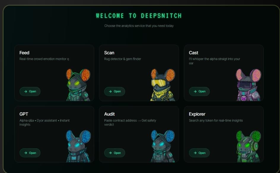 These AI agents, which are arranged neatly on the dashboard monitor, market activities 24/7 and provide real-time updates. SnitchScan tracks whale wallets in real time. AuditSnitch scans contracts for vulnerabilities. SnitchCast decodes market sentiment as it shifts. Everything lives in one window. There is no switching between tools, no friction, just insights in seconds.