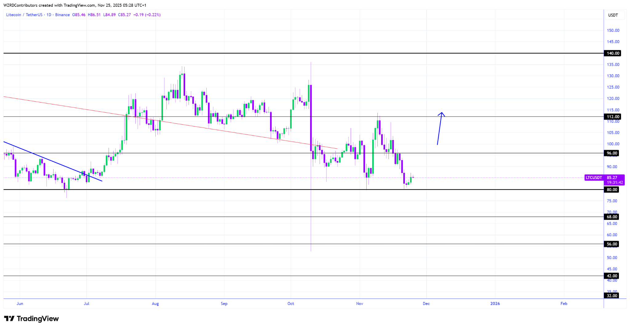 Litecoin was holding steady above $83.50 on November 27, a key support zone that could open the door to a move toward $91. A breakout-continuation setup is forming on the daily chart. Eyes are on $91.50 as the next test, but low volume and shaky conviction keep traders cautious for now.