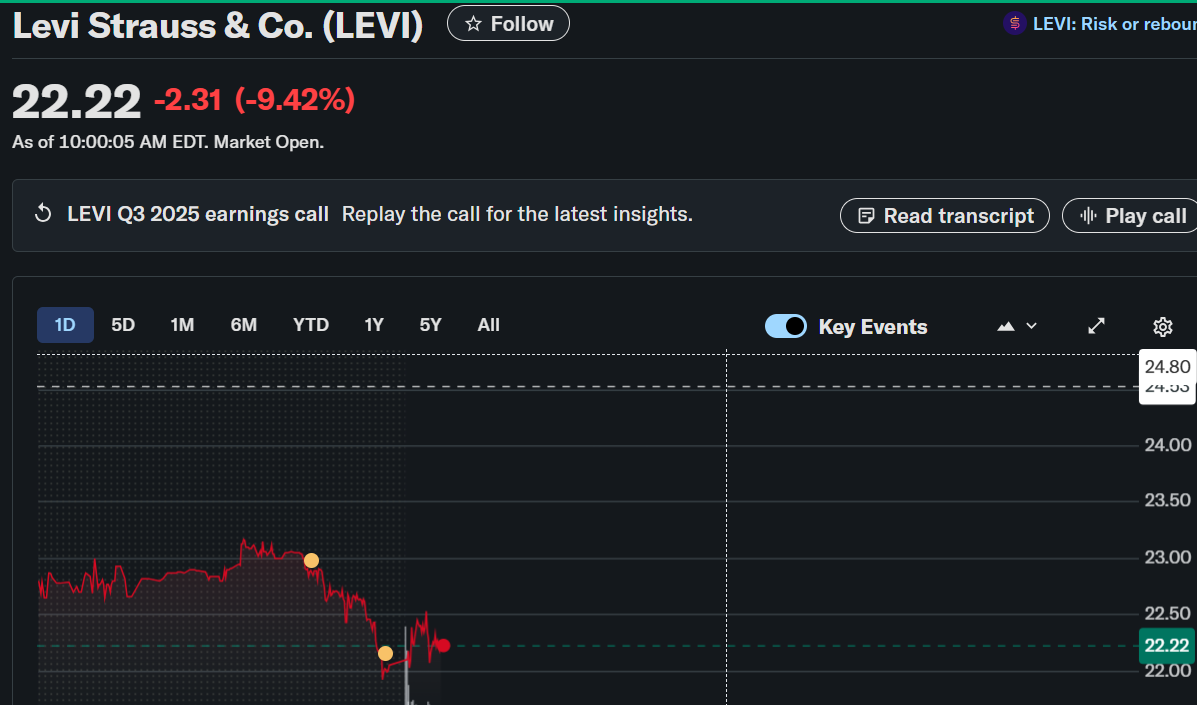Levi Strauss & Co. reported its Q3 2025 earnings on October 10, 2025. Investors will closely watch Q4 performance as the company navigates tariff pressures and evolving consumer demand.
