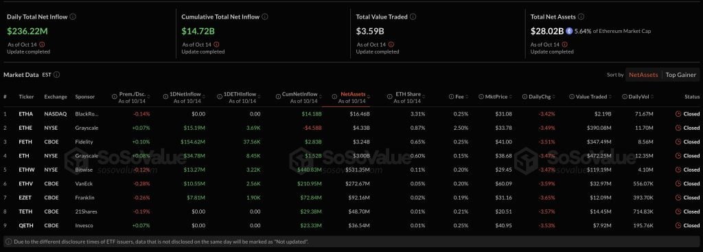 After a sharp market downturn that erased hundreds of billions in value, Bitcoin and Ethereum exchange-traded funds saw a dramatic resurgence on October 14, drawing in nearly $339 million in net inflows.