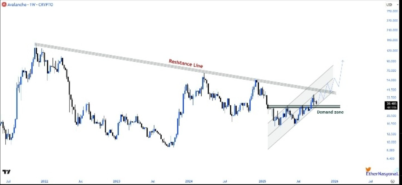 Furthermore, an AVAX price breakout above $30 would signal early confirmation, while a decisive move over $32 could unlock targets near $38, aligning with earlier cycle highs. Support rests at $24–$26, marking a strong accumulation zone confirmed by rising on-chain demand. Analysts are also pointing out that AVAX’s structure is bullish across all timeframes, with higher lows holding since the summer while market sentiment is improving steadily.