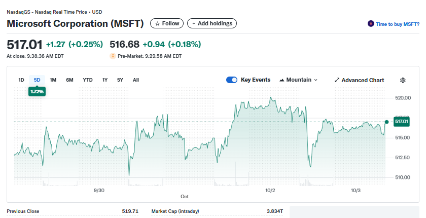 Microsoft Corporation ($MSFT) shares rose a minimal 0.15% uptick on Friday, after news of expanded renewable energy deals in Japan.