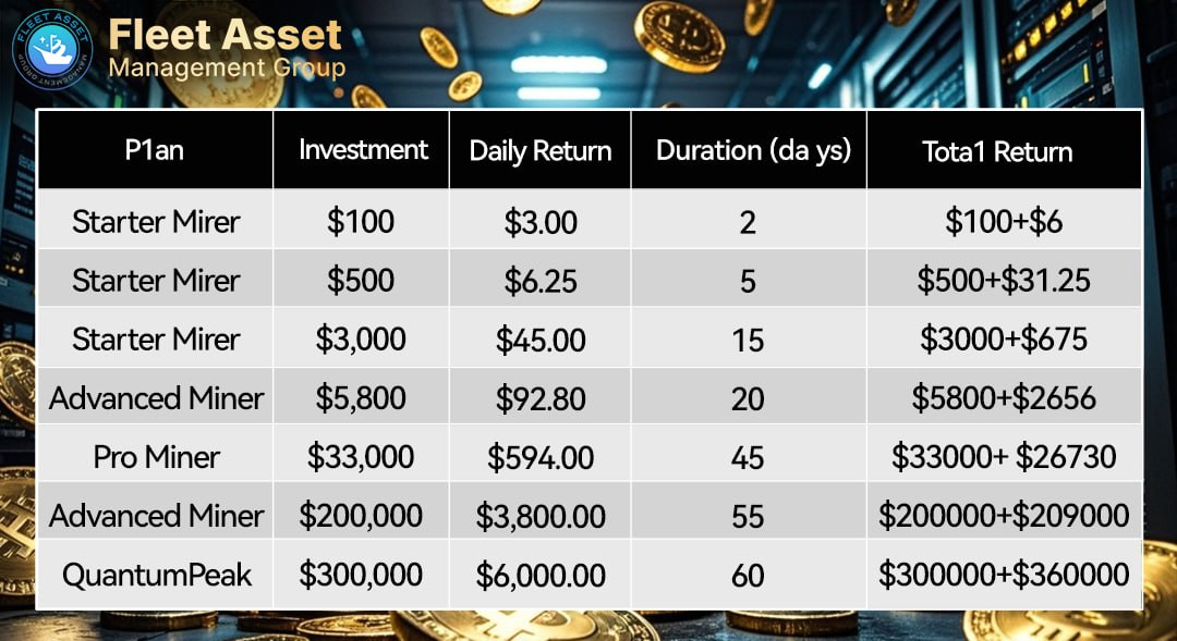 Make hashrate as accessible as electricity. Fleet Miner (under FLAMGP) is committed to mining that is accessible to everyone, sustainable long-term, compliant, and transparent. With a smooth mobile experience, AI-driven efficiency scheduling, and clean-energy hashrate, Fleet Miner sets a new benchmark for service quality and risk control in cloud mining.