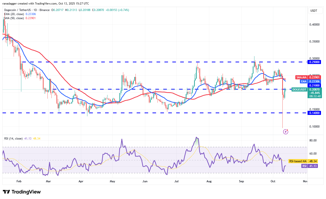 The last few days have been very volatile for DOGE. Sellers pulled below the $0.14 support level on October 10th, but were unable to achieve a close below it. But a few days later, on October 14th, the price was $0.20 was trying to recover the $0.14 to $0.29 range.