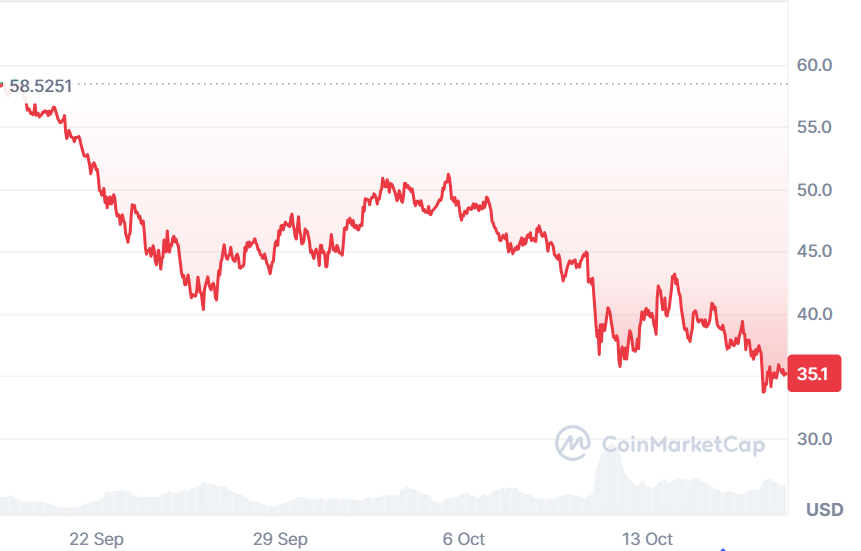 On October 17, HYPE dipped below $35, settling in the $34 area, according to CoinMarketCap.