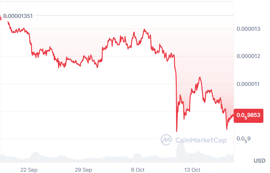 SHIB traded at $0.000009800 on October 17, according to CoinMarketCap.