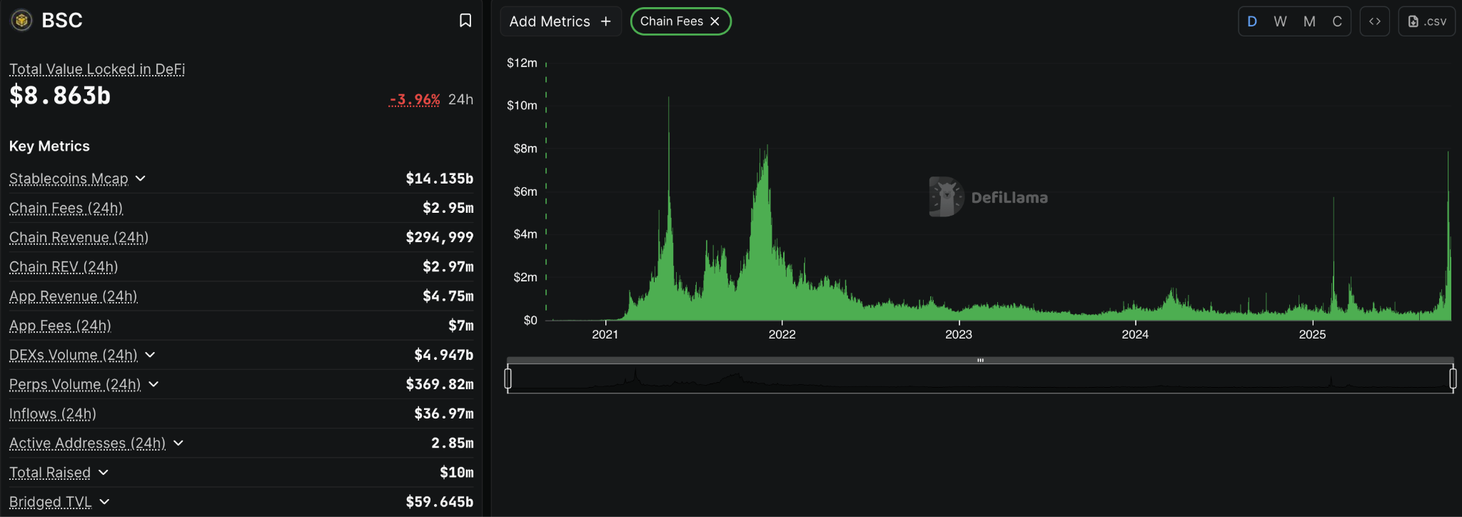 Things can change fast in the crypto world – fees on Solana have dropped significantly in 2025 compared to the peak hype of the 2024 SOL season. Meanwhile, BSC fees have surged to levels similar to Solana’s previous highs and are now magnitudes higher than they were just a couple of weeks ago.