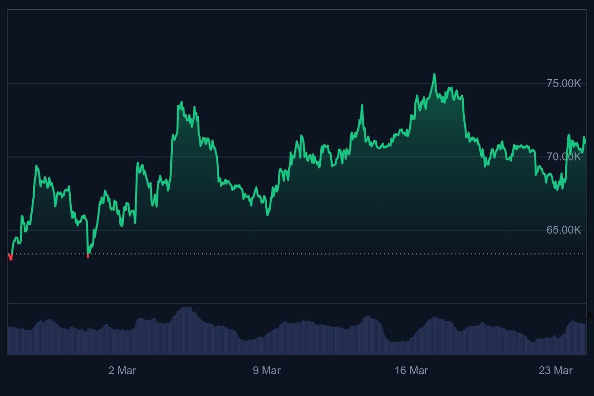 On March 1, BTC was $63,390, but by March 24, it had risen to $71,147. This is a 5% increase from its previous price. This price movement comes at a time when investors are looking to find out which project will be the next crypto to explode.