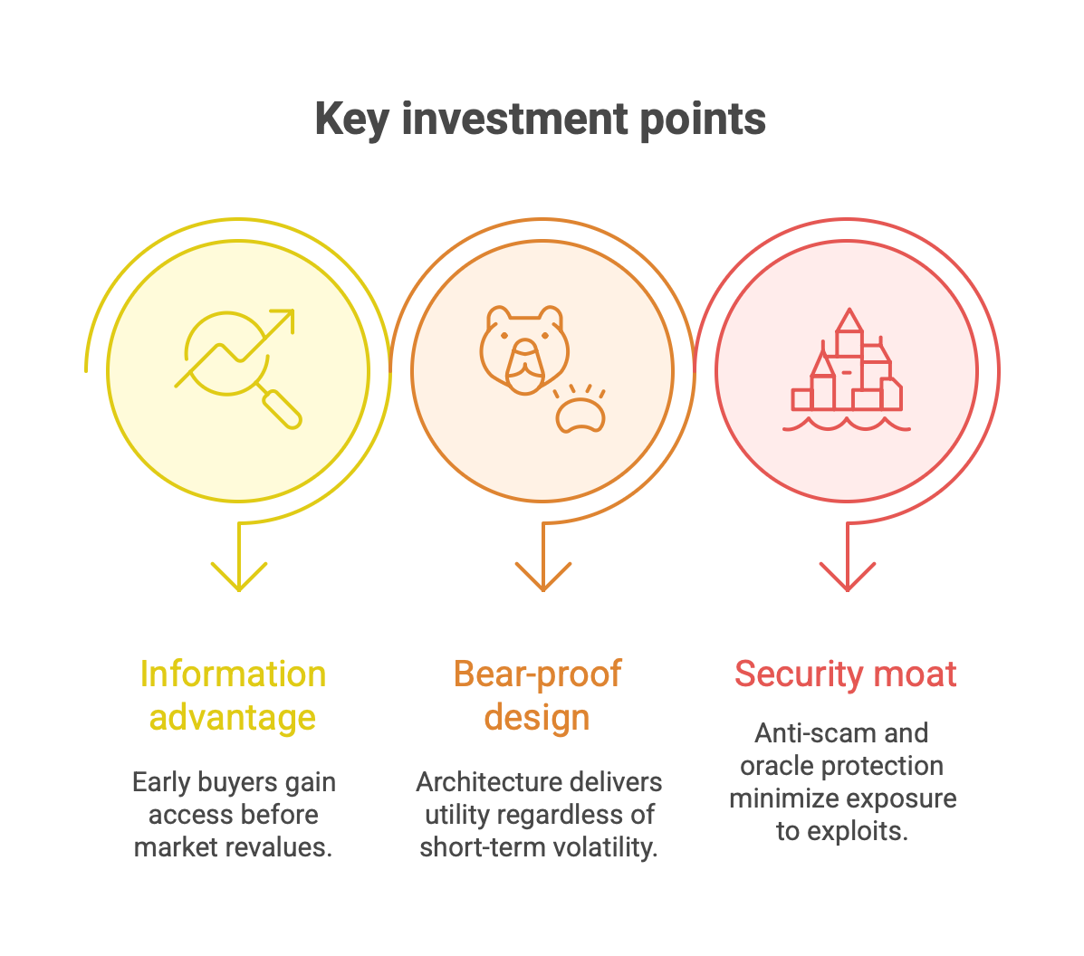 Enhanced anti-scam and oracle protection mechanisms minimize exposure to exploitative assets, distinguishing it from many breakout altcoins with upside.