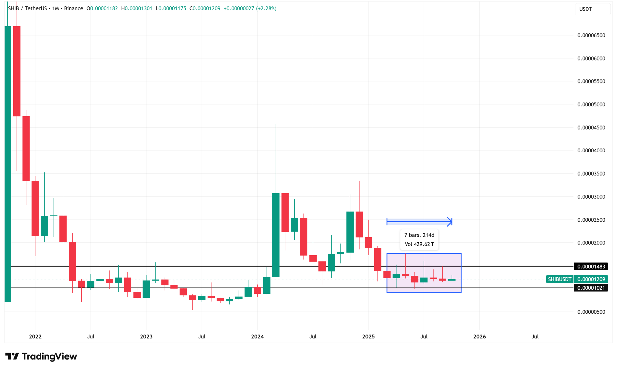 Recent SHIB setup suggests the downtrend may be weakening, as evidenced by the formation of short candles moving sideways. However, while this could signify exhaustion, the low investor confidence that has trailed the SHIB price over the last couple of months could also be a factor behind this formation.