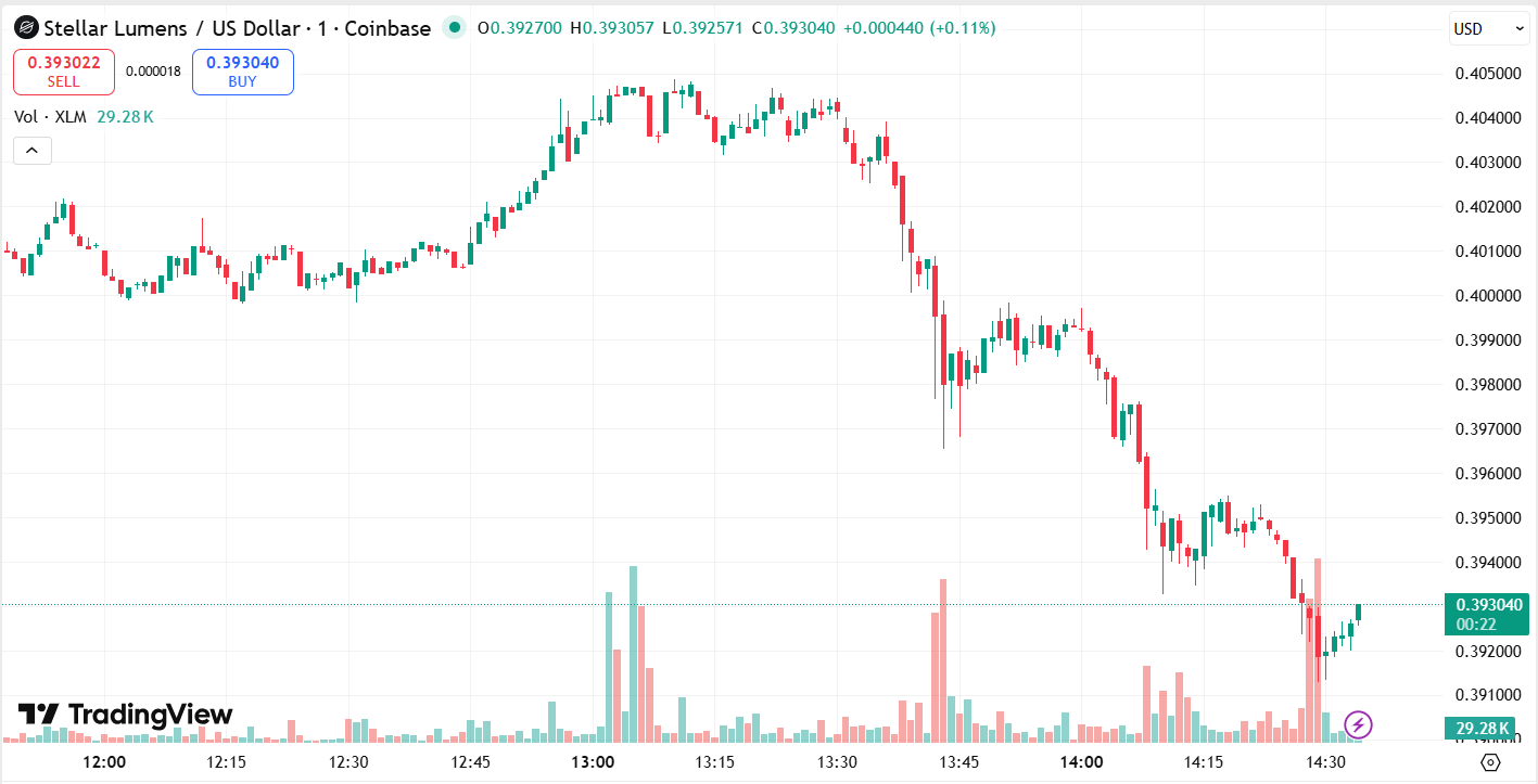 Stellar is consolidating around $0.40, with tight ranges suggesting a breakout soon.
