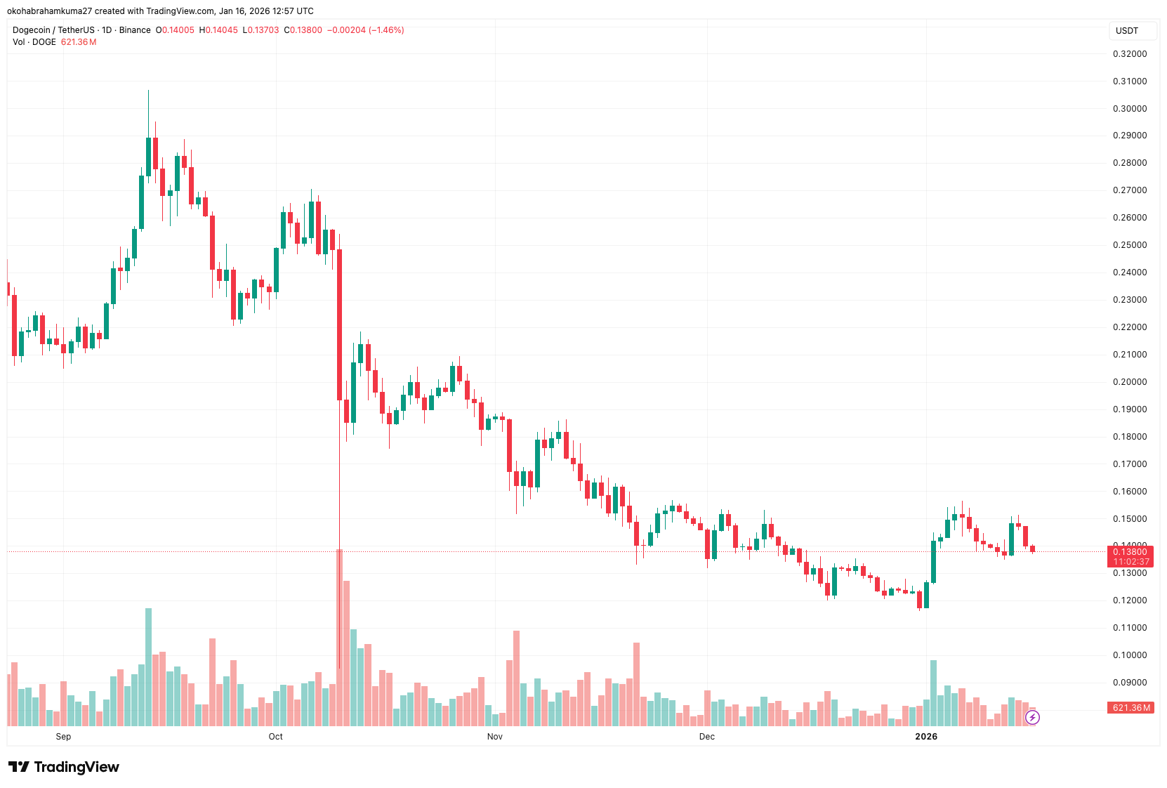 Dogecoin is one of the most recognized meme assets, but price action has seen DOGE fall below $0.147 in January 2026. Although it is common to see Dogecoin revolve around Bitcoin movements rather than its own fundamentals, its price has struggled to reach the level expected.