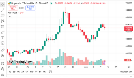 Following a five-month peak at 0.28 in July, Dogecoin has descended by almost 30 percent, and its price has recently dropped to critical support at $0.19. This weakness has led traders to wonder whether DOGE can sustain the price at the $0.19 level or whether it will fall lower and drop to the level of $0.15.