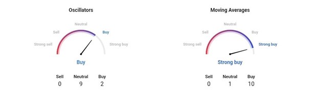 Technical indications support a bullish continuation. Both Oscillators and Moving Averages are showing buy signals.
