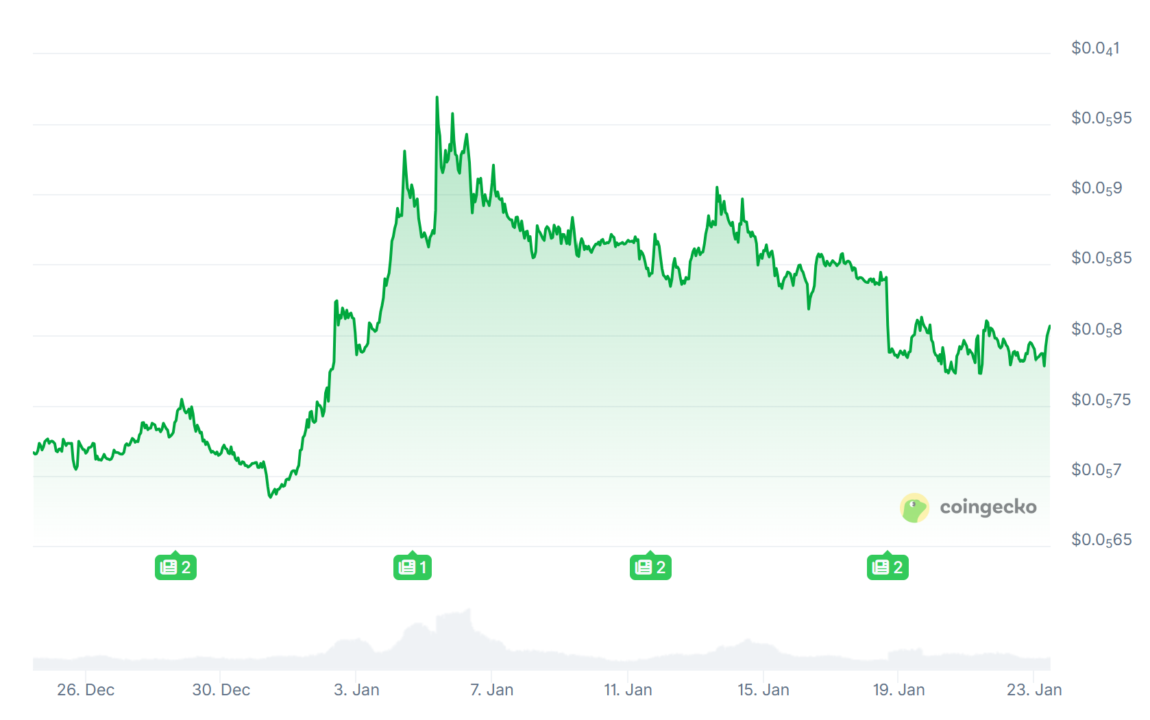 On January 23rd, Shiba Inu was priced at around $0.000008. Technical indicators suggest that Shiba Inu market sentiment is currently in a consolidation phase.