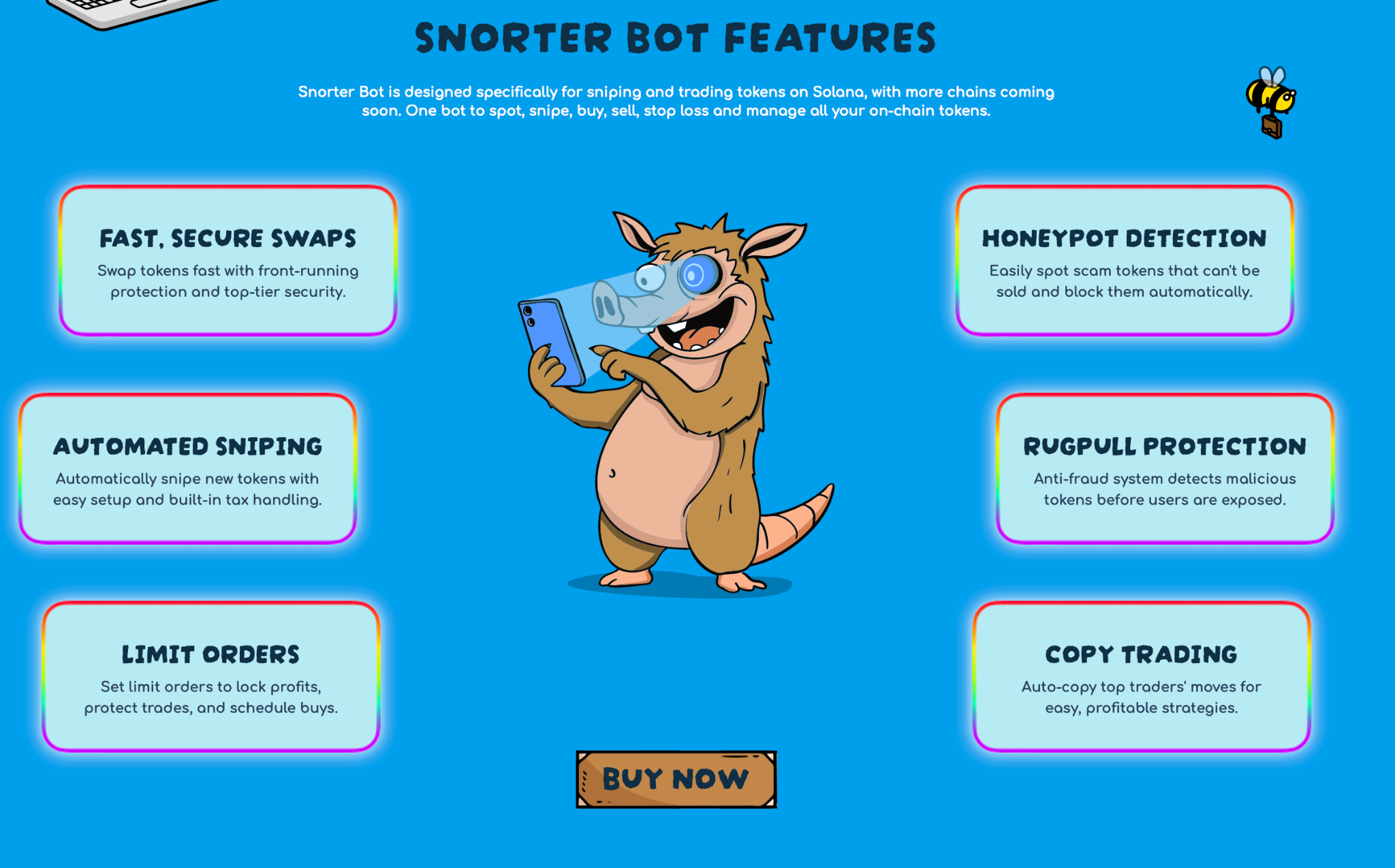 Snorter ($SNORT) is a project specifically designed to deal with the informational overload that crypto traders face, offering an all-encompassing trading bot that operates on Solana, Ethereum, BSC, Polygon, and Base. It’s built on Telegram, making automated trading as easy as sending a text.