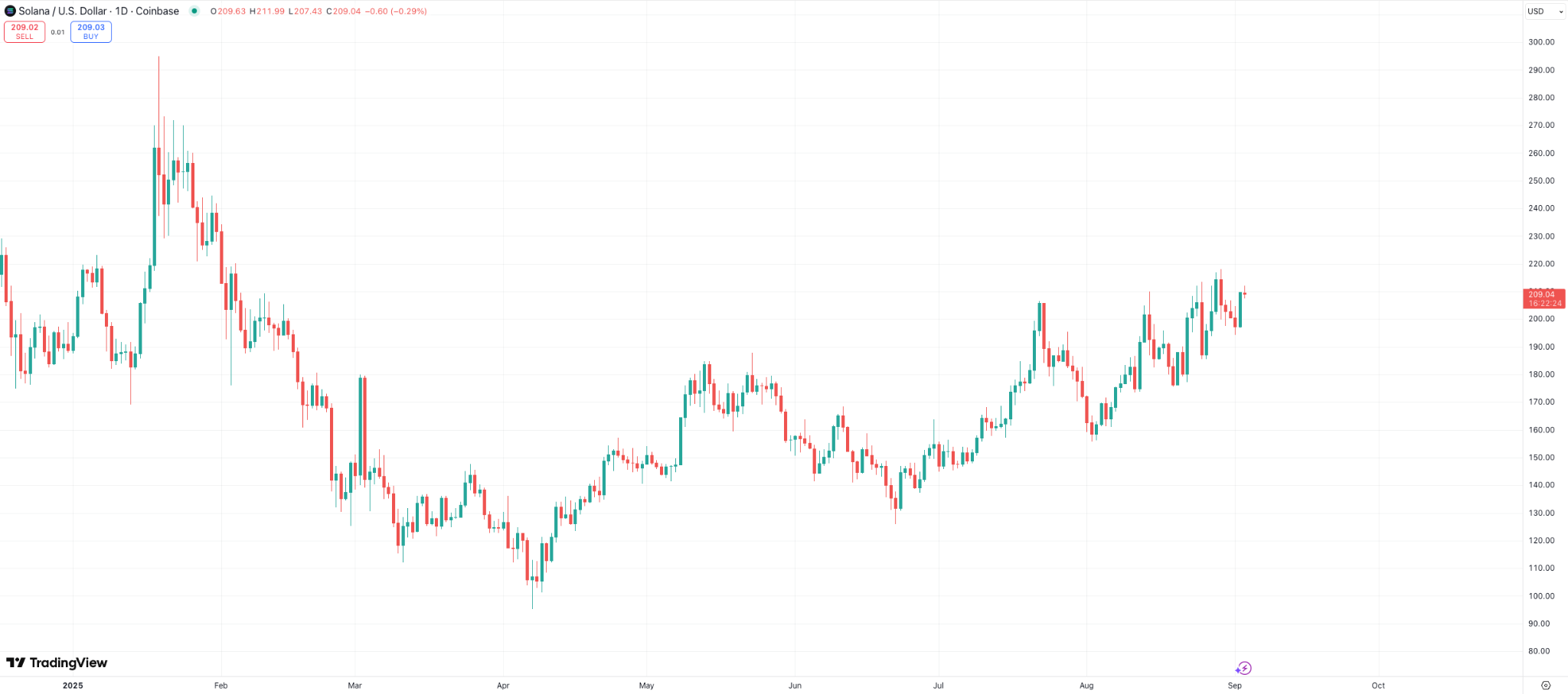 SOL is hovering around $208, up roughly 3% on the week and showing steady daily momentum. It isn’t explosive right now, but the trend is positive and lined up with several near-term catalysts.