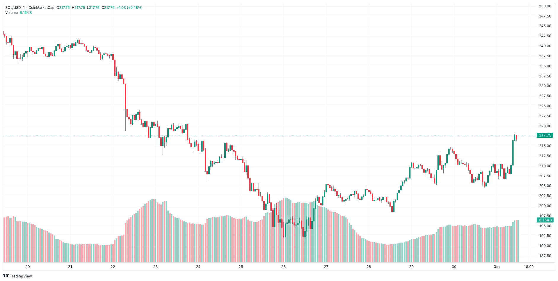 Technical indicators point to steady support levels. The 50-day simple moving average sits above $208, while the 200-day SMA remains at $168, indicating longer-term strength. Solana price predictions from analysts indicate an increase of about 13% by December, with targets near $237.