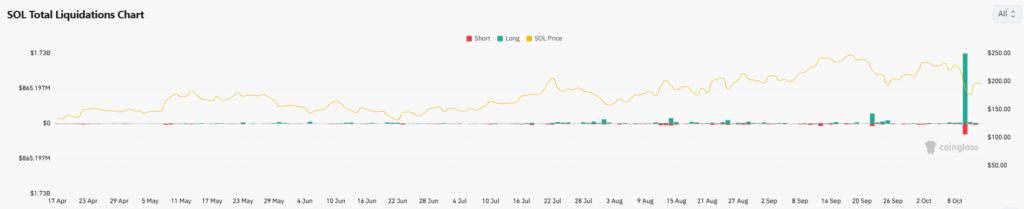 Solana’s price moved from around $221 to $177 between October 10 and 11 before recovering. The rebound came alongside rising on-chain volumes and increased DEX liquidity. Current price levels reflect improved market conditions following last week’s sell-off.