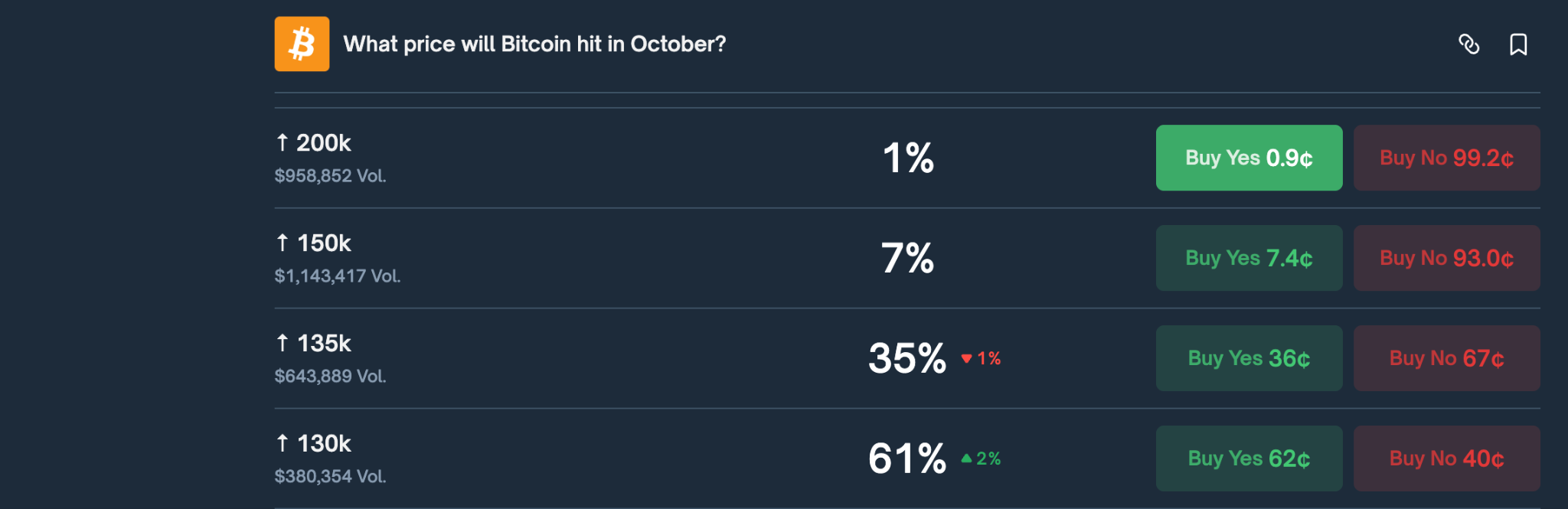 The crypto market is extending its Uptober rally after Bitcoin hit another ATH of $126,000 on Tuesday after a slight cooldown on Monday. With this renewed bullish momentum, the chance of Bitcoin reaching the next major milestone of $130,000 in October is now 61%, according to predictions market Polymarket. The platform also assigns a 35% probability to Bitcoin hitting $135,000 this month.