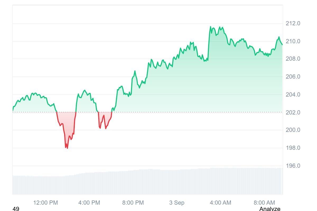 Solana is remaining steady above the critical support of $190-$195. Upside targets are $220 and $250 if the bullish surge continues. The expected Alpenglow upgrade could add further scalability and efficiency which will boost these Solana price prediction models. The likelihood of a Solana ETF is now pegged at 99% and this means that there is an increasing narrative around Solana’s potential next leg higher.