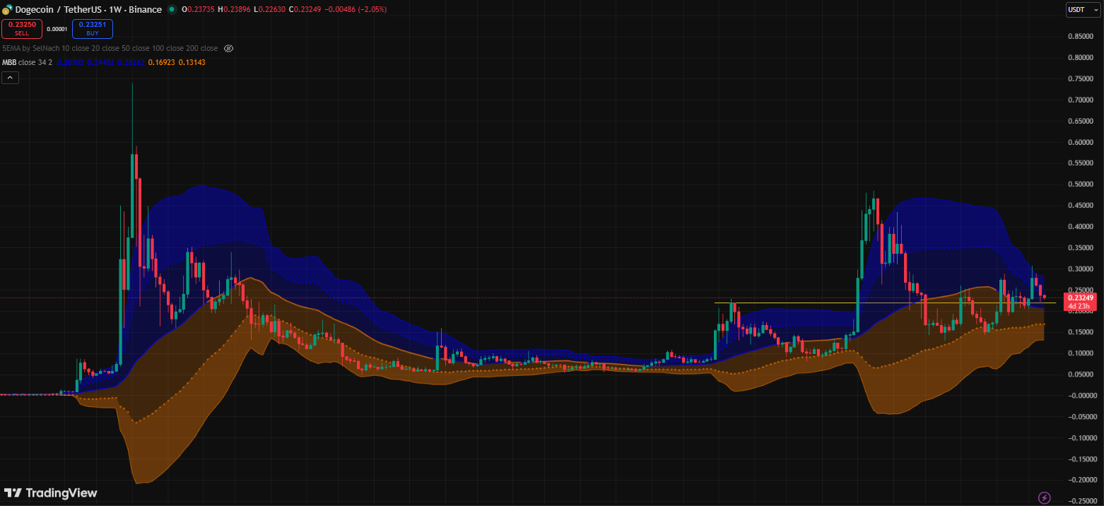 DOGE holders have been through a wild journey. While DOGE does trade under $0.30 currently, there is strong support at $0.21, and looking at the longer time frame, it makes perfect sense for Dogecoin to bounce at this level.