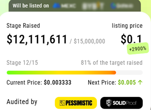 At the next 14th stage of the presale, the $XYZ token value will further rise to $0.01, meaning that early investors have the chance to secure a bigger discount.