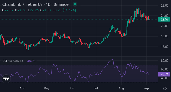 Chainlink trades between $21.88 and $25.47 after a rough week that erased 10.43%. Even so the token still glows with a 37.76% jump over the past month and a wider 47.76% rise across six months. Momentum may have cooled short term but the mid term chart keeps a bullish tone alive.