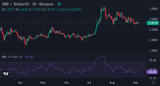 If demand builds XRP could test the nearest ceiling at $3.19 which would add about 13% from today. Breaking above that paves a route to $3.51 for a 25% climb. On the downside a slip toward $2.56 would shave roughly 9% and deeper pressure may drag it to $2.24 or minus 20%. Given the broad 6 month rise and neutral daily gauges the coin leans toward a slow grind higher though traders should watch $2.81 as the pivot that can flip the tone either way.