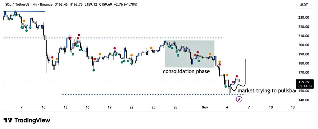 Solana was holding steady near $150-$160 on November 6, a zone that’s triggered big rebounds before.