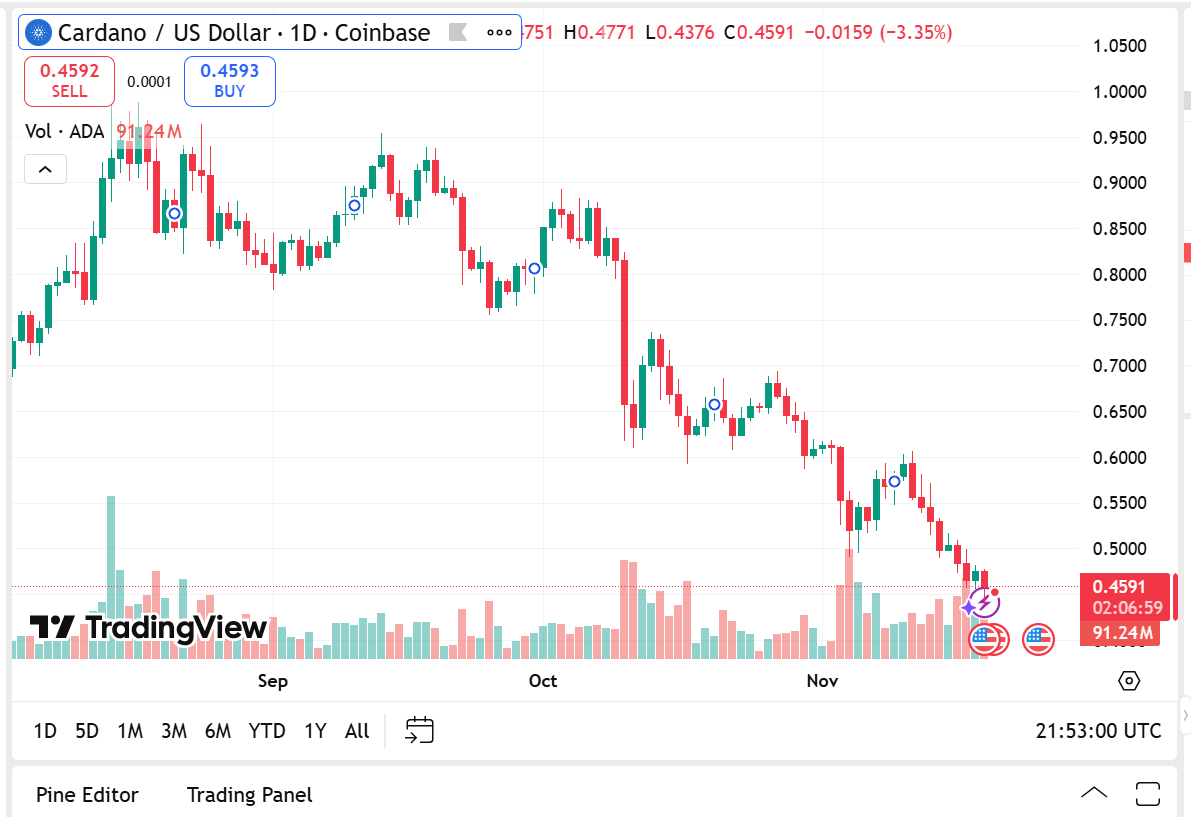 Cardano continues to attract value focused investors who favor careful development and methodological progress. ADA is currently priced at $0.4592, down 5.99 percent over the past 24 hours, with a market cap of $16.22 billion. Trading volume has risen 34.82 percent to $847.92 million, indicating an influx of trader interest.