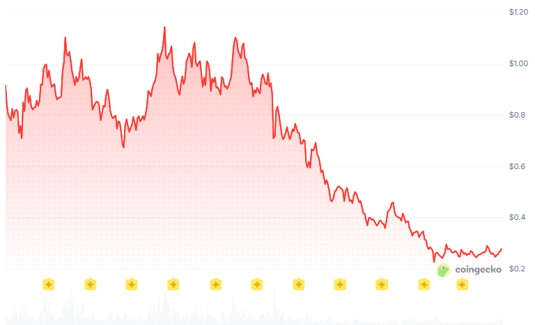 ONDO was trading at $0.28 on March 27th, with the token down roughly 87% from its all-time high of $2.14 set in December 2024. The macro picture has been brutal for ONDO, as rising rates and risk-off sentiment hit RWA tokens hard across the board.