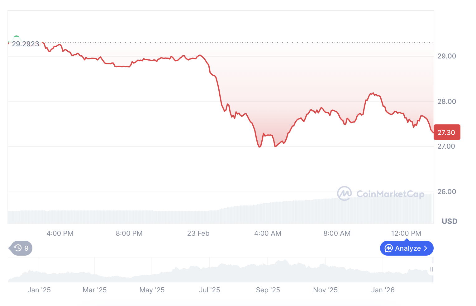HYPE has thoroughly earned its reputation, the community is devoted, and the protocol traction speaks for itself. Still, it’s been struggling to hold, and as of February 23, it’s been hovering around $27, dragged lower as volume fell roughly 25%.